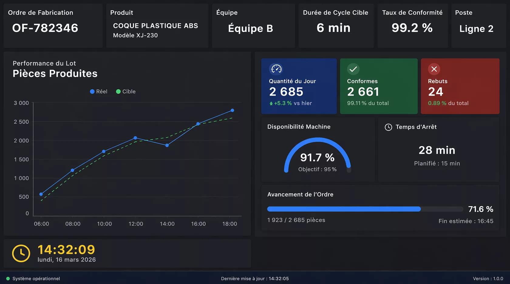 Display production metrics, machine status, and alerts directly on shopfloor screens.